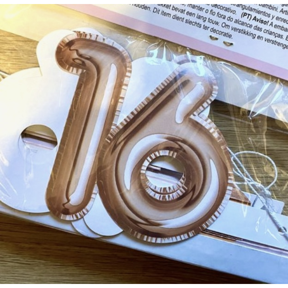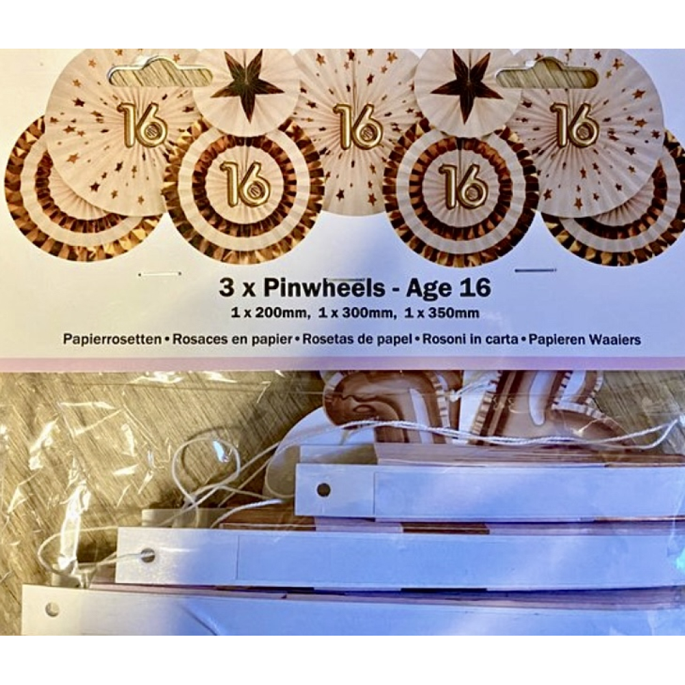 3 stuks Pinwheels age 16 Glitz & Glamour Pink, Sweet sixteen