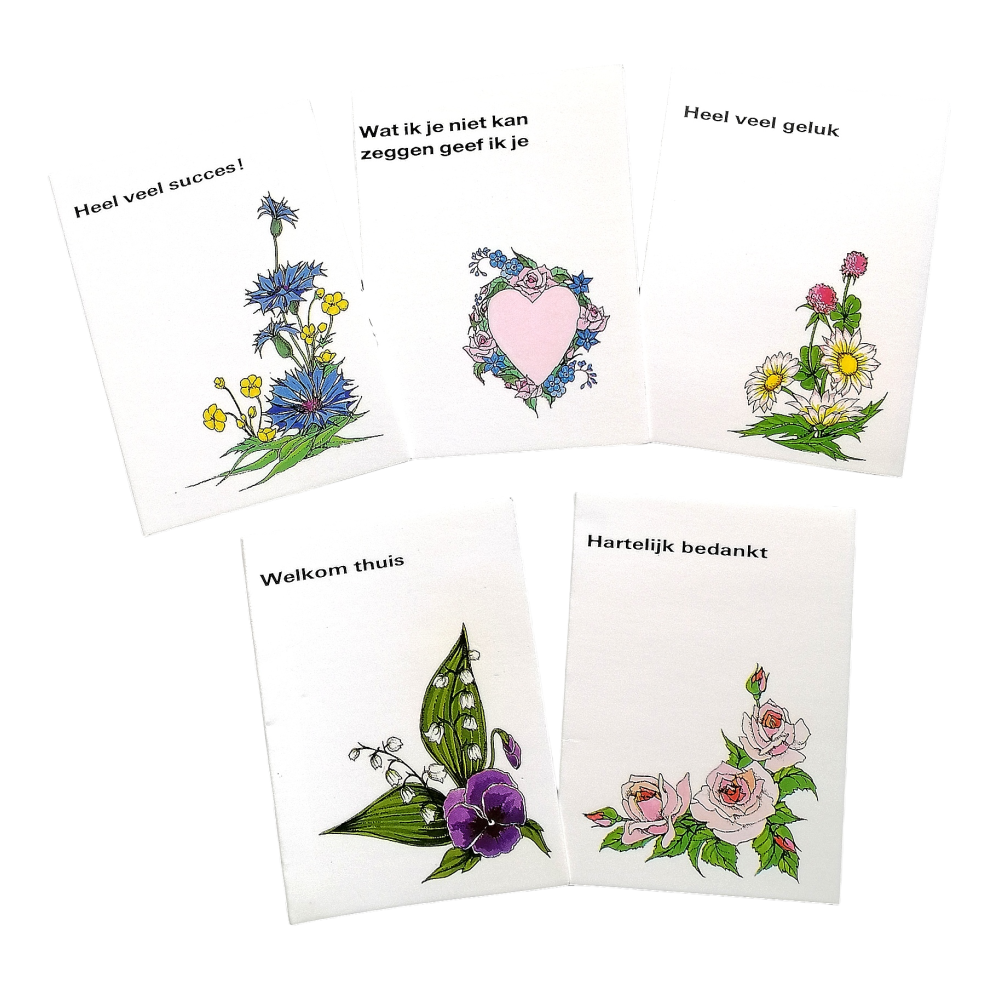Een klein gebaar met grote betekenis! Deze set van 5 kleine kaartjes bevat verschillende teksten en boodschappen – van een lief bedankje tot een vrolijke wens of een oppepper. Perfect om bij een cadeautje te voegen, iemand blij te maken of gewoon zomaar te geven. Mooi om te delen, leuk om te bewaren!