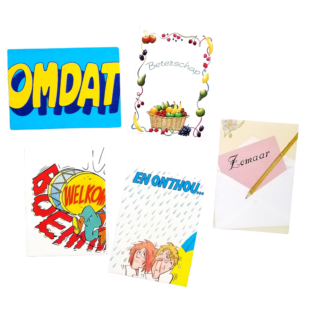 5 kleine kaartjes met diverseboodschappen