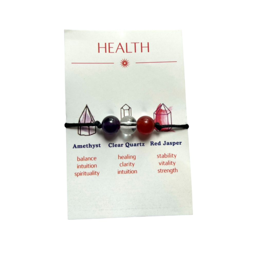 Armbandje 3 stenen Health met Amethyst, Bergkristal en Rode jaspis