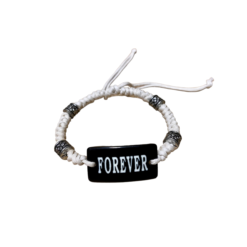 Tijdloos, puur en vol betekenis – dit witte armbandje met de tekst Forever staat symbool voor blijvende liefde, vriendschap of herinnering. Subtiel en stijlvol, perfect om te dragen als persoonlijk statement of als bijzonder cadeautje voor iemand die altijd een speciaal plekje in je hart heeft. Want sommige verbindingen zijn voor altijd.