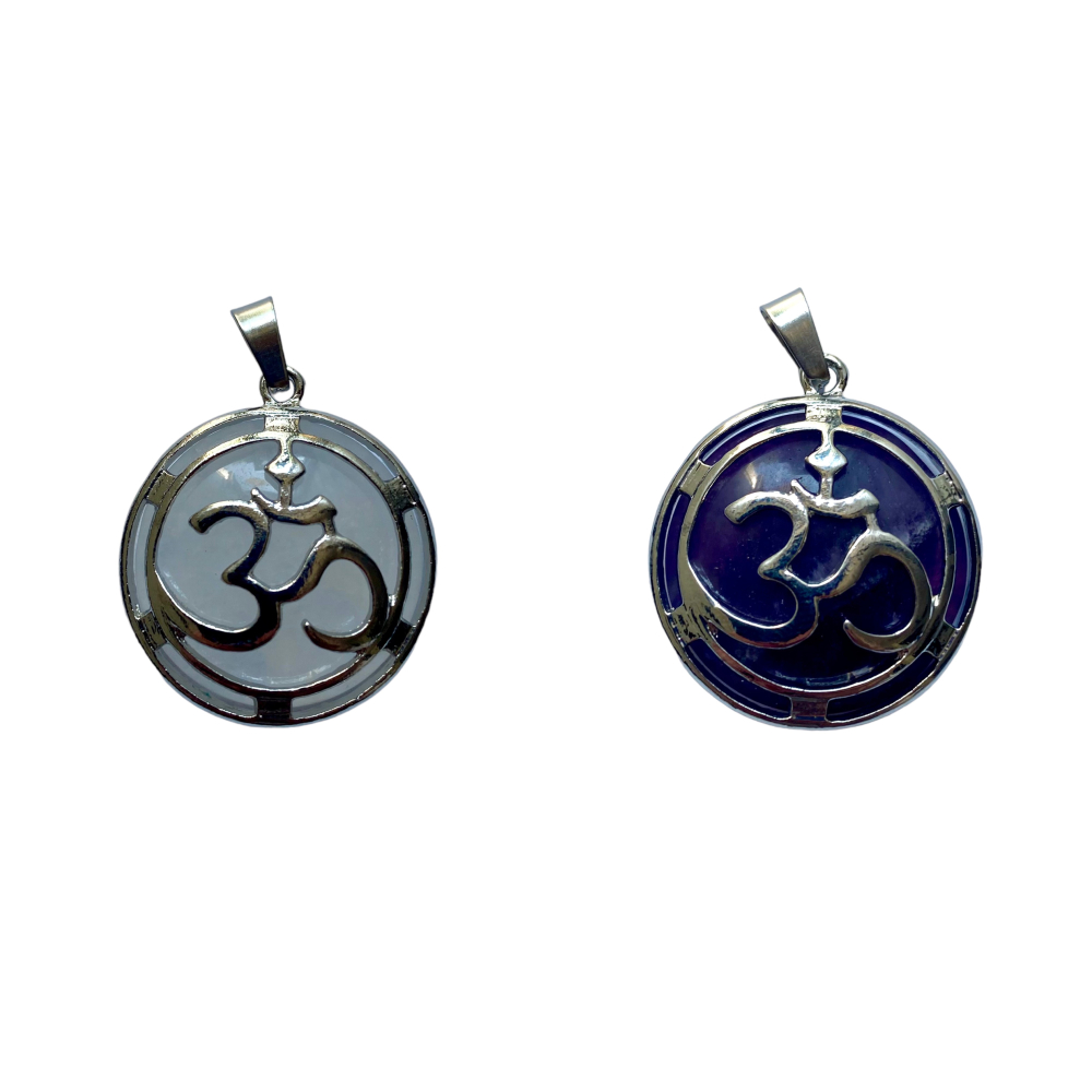 Edelsteen hanger met OHM symbool in Bergkristal of Amethist