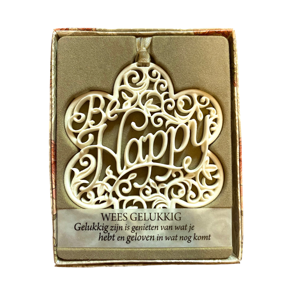 H&&H Inspirerende woorden hanger "Happy" in Bloemvorm