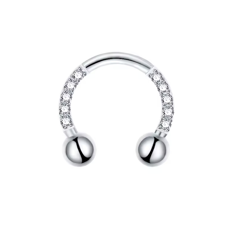Hoefijzer Piercing Zilverkleurig met steentjes in diverse maten