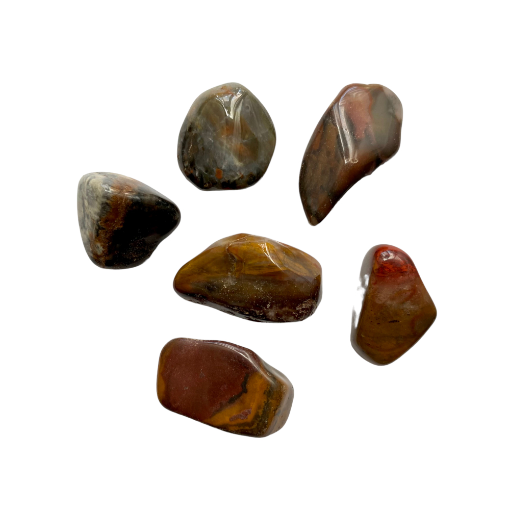 Wordt beschouwd als een aardende steen die kracht en uithoudingsvermogen van de geest en het lichaam bevordert. Het helpt gebruikers te motiveren en biedt het uithoudingsvermogen voor succes. De kalmerende energie kan stress verlichten. Polychroom Jaspis wordt vaak gebruikt om de geest stimuleren en creatieve vaardigheden te verbeteren