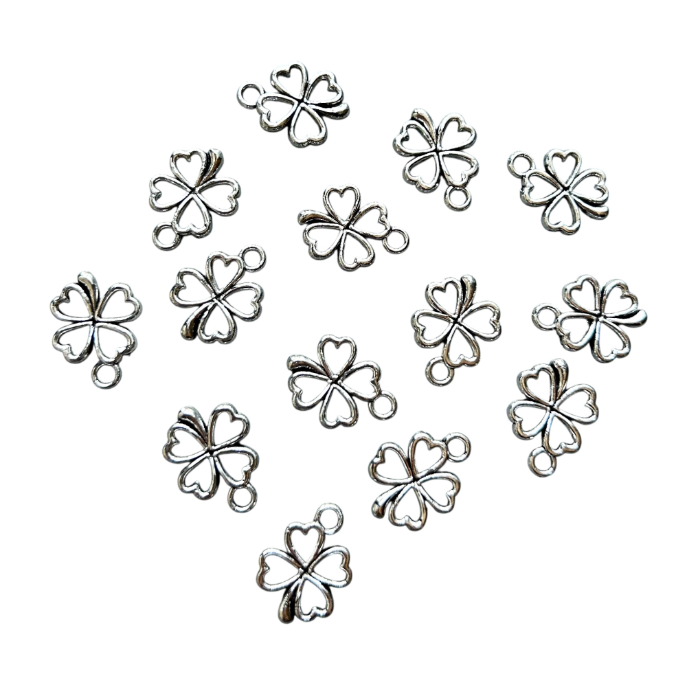 Klavertje vier bedels Zilverkleurig 10 stuks