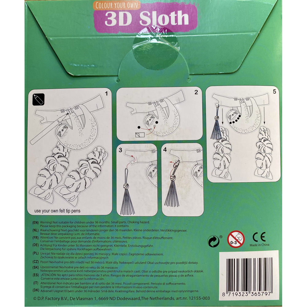 Kleur je eigen 3D Luiaard