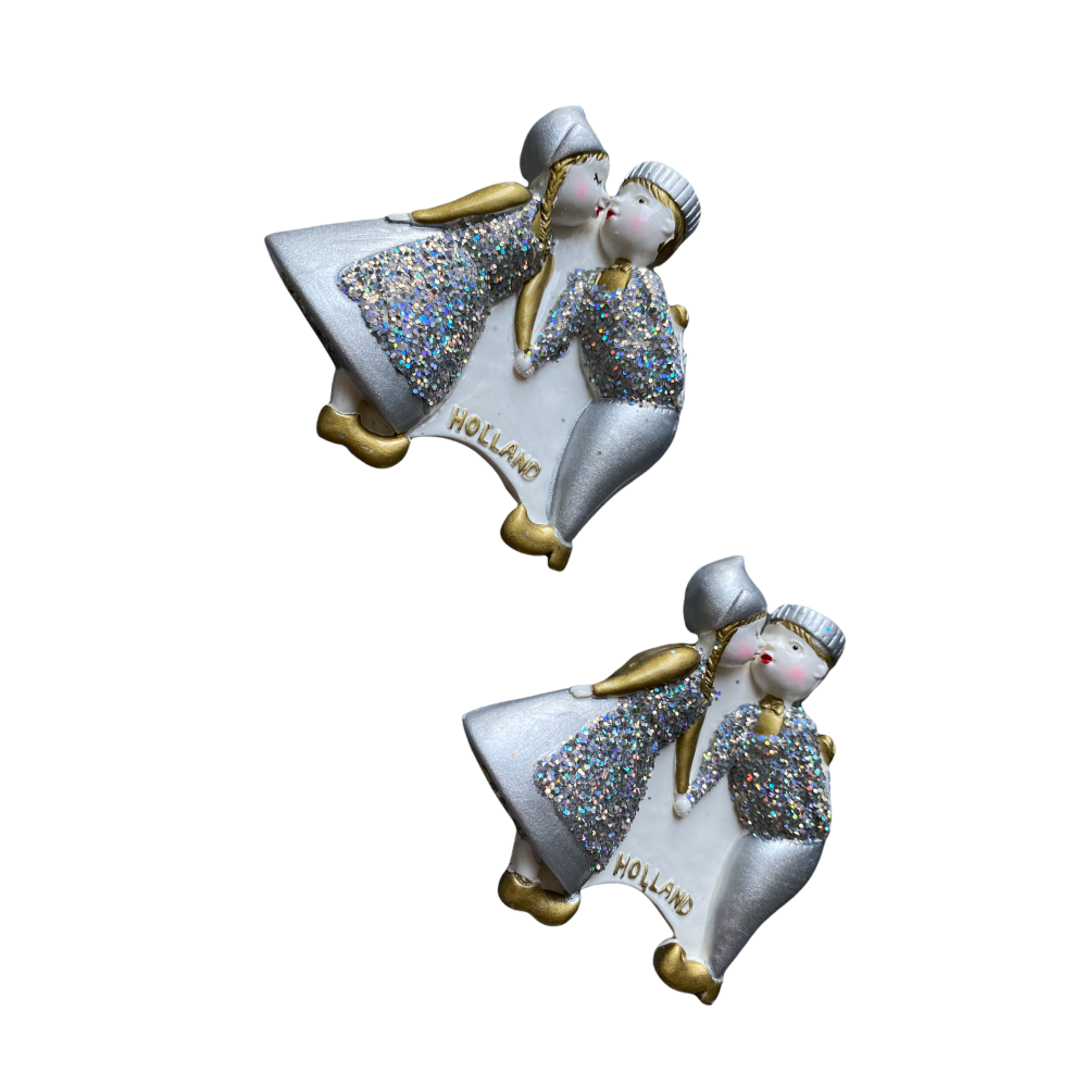 Koelkastmagneet Holland Kussend paar Goud/Wit