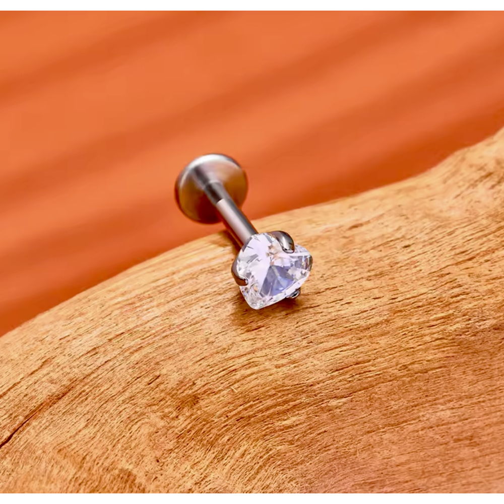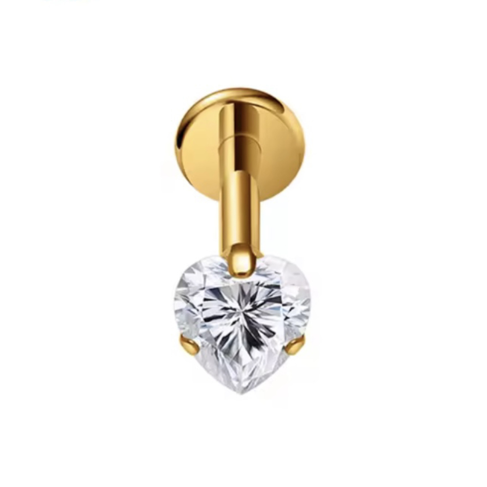 Labret Piercing Goudkleurig Hart steentje 8x1.2