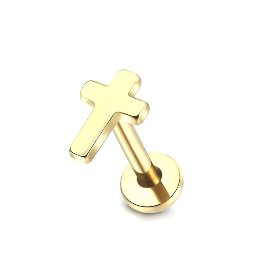 Labret Piercing Kruis Goudkleurig 8x1.2