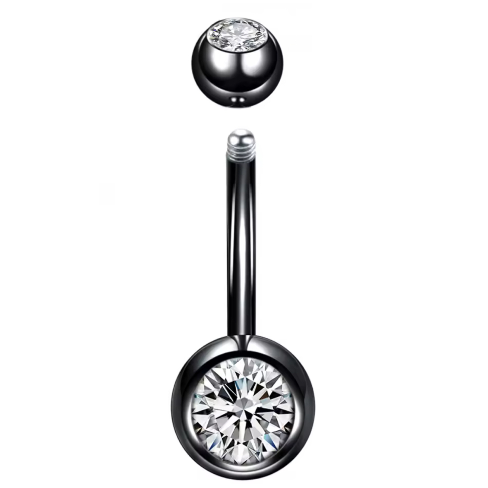 Navelpiercing Zwart met steen 1.6x5 diverse maten