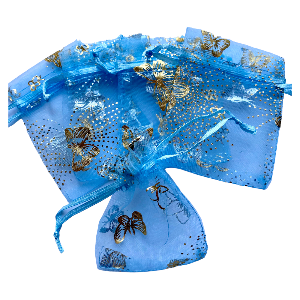 Organza zakje 7x9cm Vlinder Blauw Goud