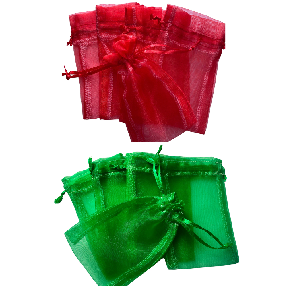 Organza zakje 8,5x13cm in rood en groen