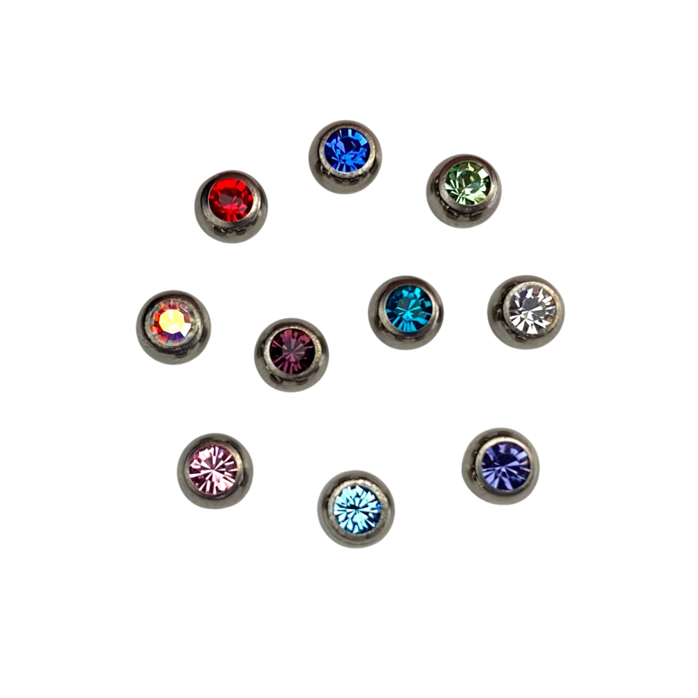 Piercing balletje 5mm met gekleurde steentjes