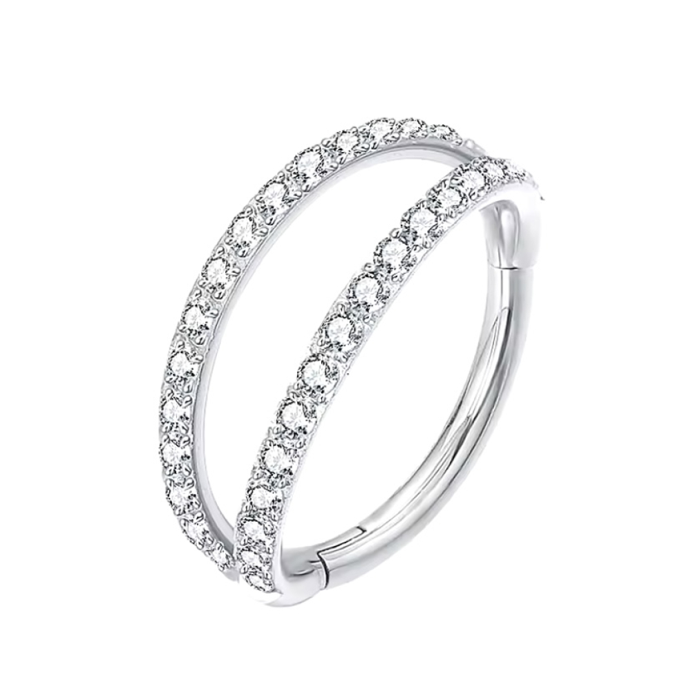 Piercing Ring dubbel met steentjes Zilverkleurig 10x1.2
