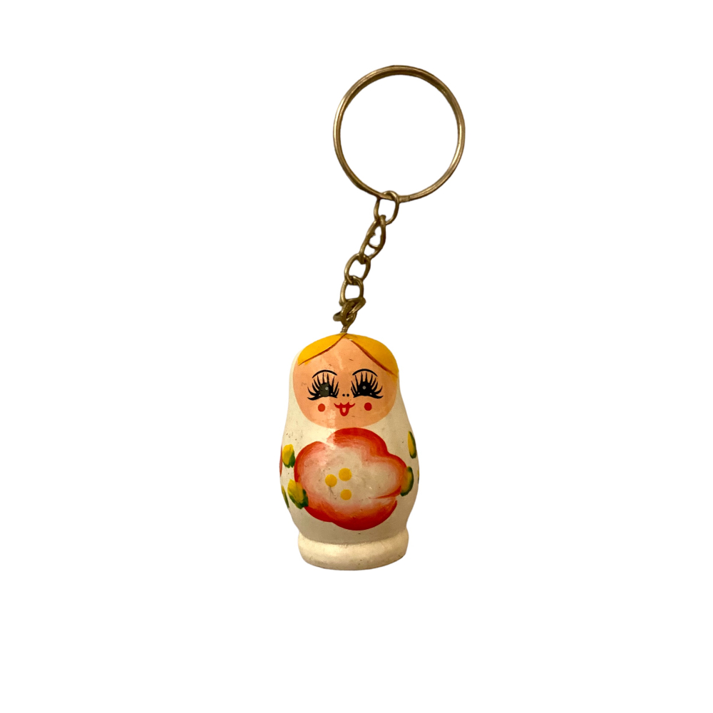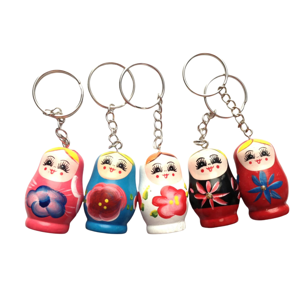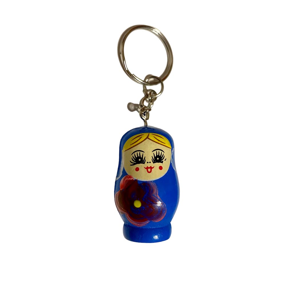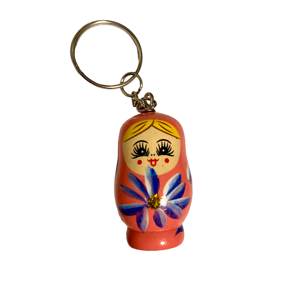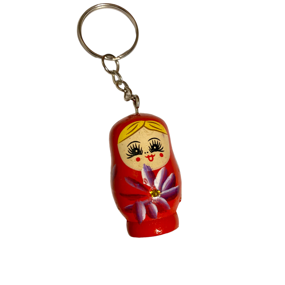 Deze vrolijke Matroesjka sleutelhanger brengt een vleugje kleur en karakter aan je sleutelbos, tas of etui! Met haar traditionele uitstraling en schattige details is ze niet alleen handig, maar ook een echte blikvanger. Leuk als cadeautje, gelukshangertje of gewoon om jezelf blij mee te maken. Klein van formaat, groots in charme!