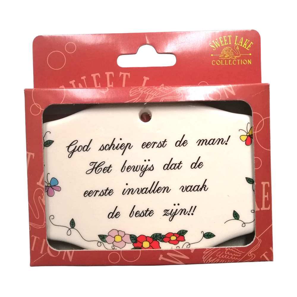 Sweet Lake Collection Spreuk Tegel Magneet "God schiep eerst de man"