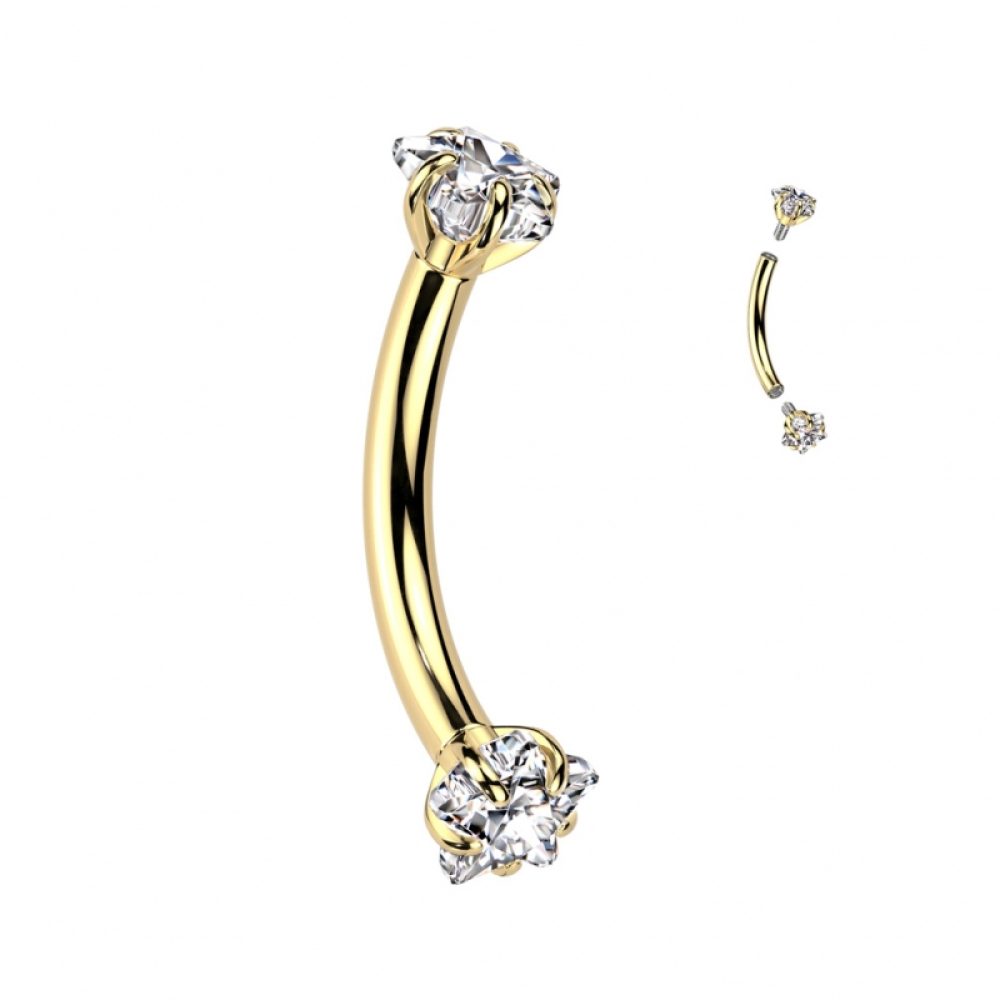 Wenkbrauw/Rook Piercing steentjes Goudkleurig 8x1.2